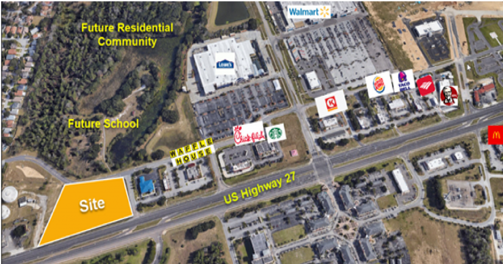Our Project is about just 4 miles in  the west of Walt Disney World.Site is anchored by Lowe’s and Walmart  with interconnected roads. Nearby  tenant  includes Starbulks, Chili’s,Bank of America,newly constructed Orlando Health South Lake Hospital, Chick-Fil-A  and many more. The site has frontage to US27 with two access point.The new Proposed road offers connectivity to SR429.